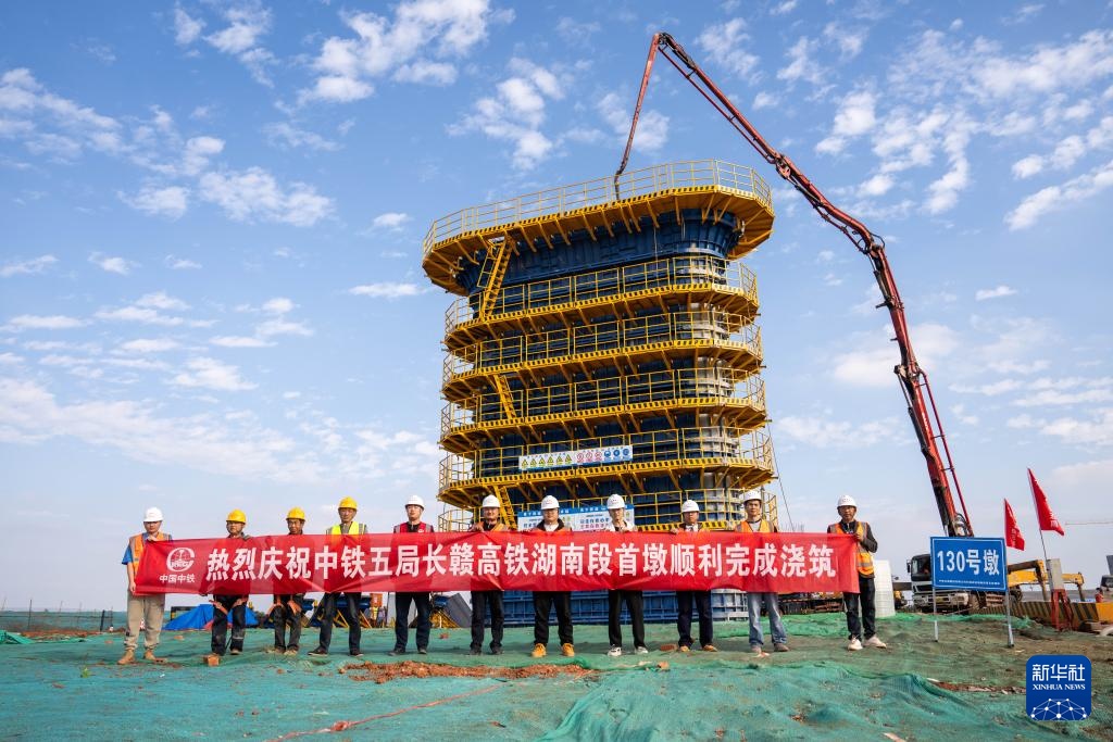 11月5日,在长江赣西高铁机场大桥施工现场,中铁五局工人们庆祝项目首墩浇筑顺利完成。当日,铁五工程局承建的长江赣西高铁重大管理工程机场高速大桥130号码头混凝土浇筑完成。长江赣西高铁连接湖南省长沙市和江西省赣州市。是国家“八纵八横”高铁网之一的厦渝走廊的重要组成部分。新华社记者 陈思涵 摄 分页 11月5日,在长江赣西高铁机场高速公路施工现场,中国铁路总公司相关负责人五局汇报了桥墩混凝土浇筑进展情况。当日,铁五工程局承建的长江赣西高铁重大管理工程机场高速大桥130号码头混凝土浇筑完成。长江赣西高铁连接湖南省长沙市和江西省赣州市。是国家“八纵八横”高铁网之一的厦渝走廊的重要组成部分。供图:新华社记者陈思涵新页11月5日,中铁五局工人在长江赣西高铁机场高速公路大桥施工现场给桥柱浇水(无人机照片)。同日,长江重大管理工程机场高速大桥130号码头混凝土浇筑完成泽赣高铁由中国铁路第五工程局承建。长江赣西高铁连接湖南省长沙市和江西省赣州市。是国家“八纵八横”高铁网之一的厦渝走廊的重要组成部分。新华社记者陈思涵供图 分页这是11月5日在长江赣西高铁机场大桥施工现场130号码头拍摄的。今天,铁五工程局承建的长江赣西高铁重大管理工程机场高速大桥130号码头混凝土浇筑完成。长江赣西高铁连接湖南省长沙市和江西省赣州市。是厦渝走廊的重要组成部分,是国家重点建设的走廊之一。尝试“八纵八横”的高铁网络。新华社记者 陈思涵 摄 分页 11月5日,在长江赣西高铁机场大桥施工现场,中铁五局的工人正在给桥柱浇水。当天,由中国铁路第五工程局承建的长江赣西重大高速铁路管理工程,机场高速大桥130号码头混凝土浇筑已完成。长江赣西高铁连接湖南省长沙市和江西省赣州市。是国家“八纵八横”高铁网之一的厦渝走廊的重要组成部分。新华社记者陈诗涵供图。 上一篇:深化亚太合作,共同开创发展新局面(全球热点 下一篇:没有了